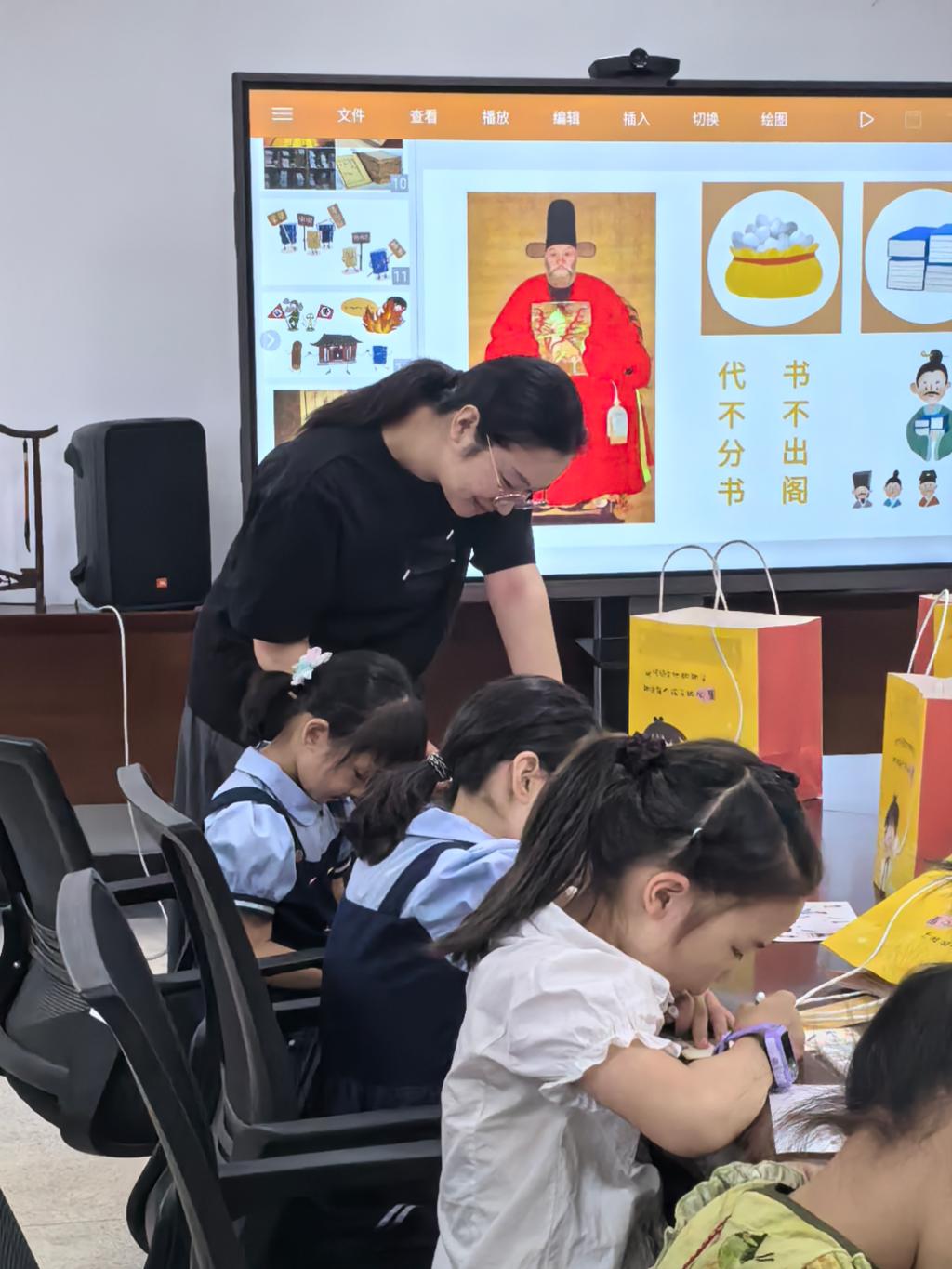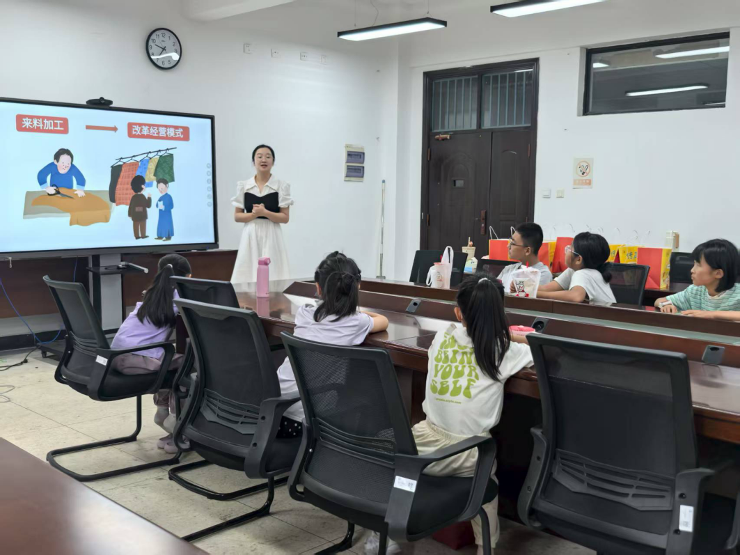 本次系列课程由传声童科普基地毛娇丹老师主讲,围绕宁波“水稻文明之源”“药商文化之根”“海丝明珠之路”“藏书文化之盛”“红帮裁缝之乡”五大城市文化名片展开。课堂上,毛老师通过讲述故事、多媒体课件展示和相关视频介绍,将抽象的文化概念转化为孩子们易于理解的知识模块:从河姆渡遗址炭化稻粒中藏着的千年农耕密码,到屠呦呦奶奶以青蒿素点亮人类抗疟征程的科学火种;从 "书藏古今、港通天下" 的城市基因里,看宁波港帆樯万里的壮阔与天一阁四百五十年藏书不辍的坚守;再到红帮裁缝用一把剪刀裁出的中国近代服装变革史,一针一线都凝结着精益求精的匠人初心……孩子们在课堂上展现出浓厚的探索欲:时而凝神倾听,时而踊跃举手提问。一个个充满童趣的问题,在老师的耐心解答中逐渐转化为对家乡文化的深刻认知,会议室里始终洋溢着欢快热烈的气息。